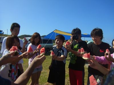 二日目は朝ごはんを食べたあとスイカ割り!