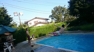 次の日の雨予報も手伝って、ほぼ全員夜までプールではしゃぎ倒しました(*´艸`)