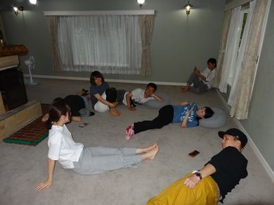 ラフティングの後はみんなお疲れモード。